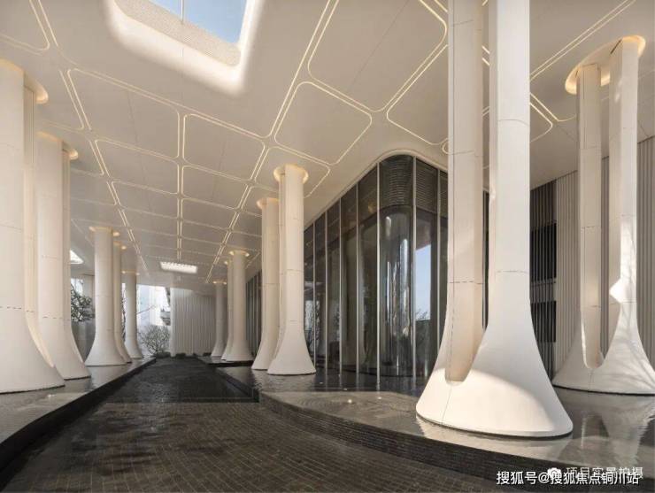 穿越约10米门廊,24米流水与绿植围合为声景结界,步入高约8.5米挑空大堂,完成从社会身份到家庭角色的回归。