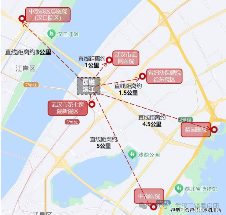 项目5-10分钟车程内拥有包含中南医院、梨园医院、中部战区总医院、湖北省妇幼保健院、武昌医院等多个三甲医院,项目南边不远就是在建的七医院新院区,目前已经封顶,建成后业主看病就医也比较方便。
