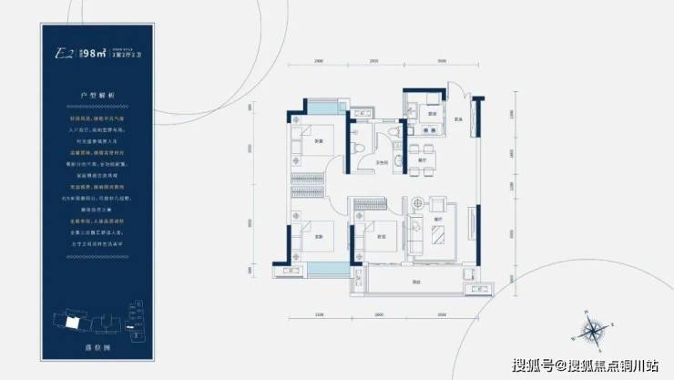 【E2户型 :约98㎡户型 3室2厅2卫】
