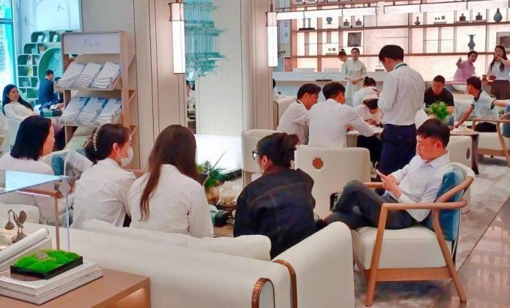 △方岛金茂晓棠购房现场十分火热。