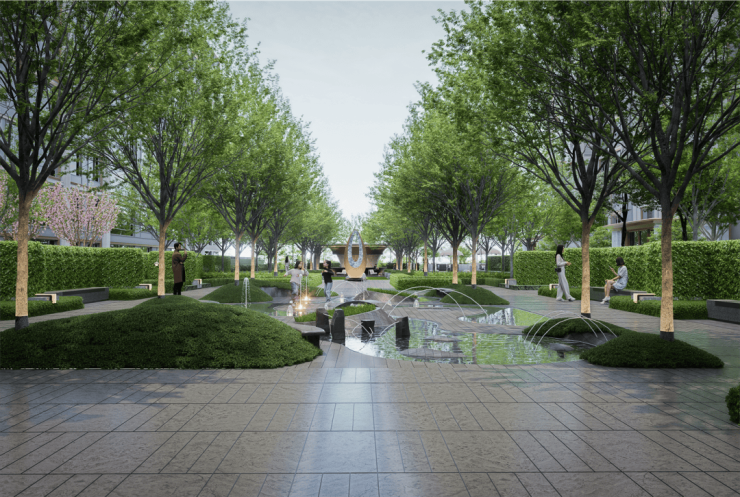 前场规划有酒店式环岛落客区,并配置水景,其间坐落的“星辰之恋”雕塑,让每一次归家都享受着明星版礼遇。
