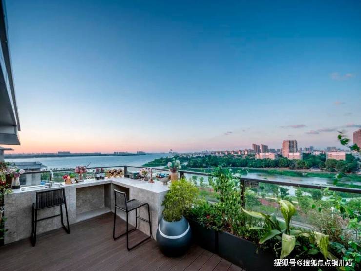 顶层露台,可以用来养花种菜,实现“有天有地”,再做个吧台,闲暇时约三五好友,在清新的湖风吹拂下,开一瓶红酒,或者来个BBQ,自是闲适十足;二层的露台,可以作为休闲阳台,放个小圆桌,摆上椅子,和爱人、孩子看看书、聊天,抬眼可见的后官湖风景,能够安抚一天的疲惫。