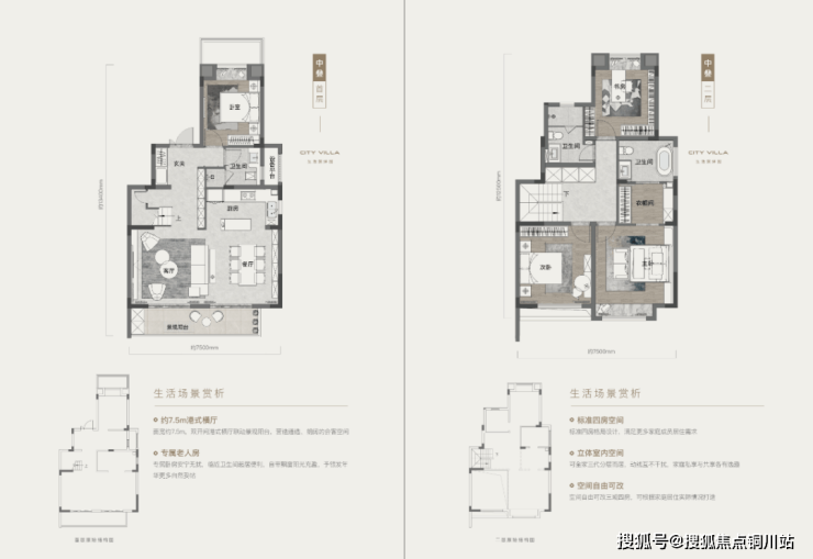 由花园进入室内,是约7.5m宽的IMAX横厅和立体的多层空间,首层专属老人房,二层超级主卧套房、儿童房,三代人分层而居,每个家庭成员都有各自独立的活动空间,又能互相照顾,幸福生活自此不将就。