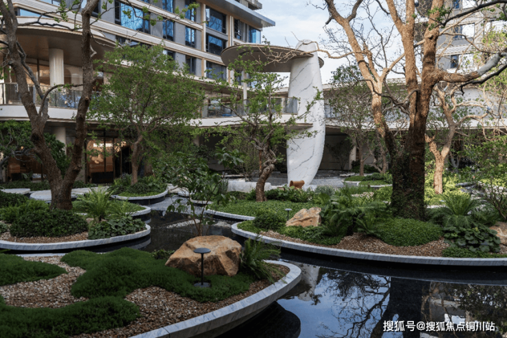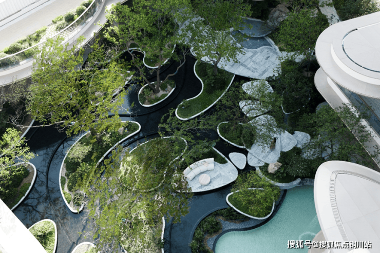 以虹夕诺雅为灵感源泉,打造约3000㎡浮岛溪涧下称庭院,以园林景观贯穿地上与地下,塑造视觉的垂直立体性,打破空间边界,让自然度假感完整无缺的无界流动。