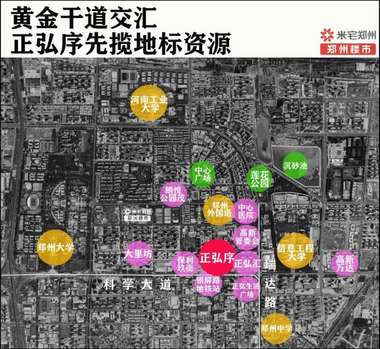科学大道和瑞达路,是高新区最重要的两条城市主干道,地铁8号线沿着走,郑州大学、信大、正弘汇、郑州中学、高新万达、郑州美术馆、高新管委会等地标都在这两条路上。