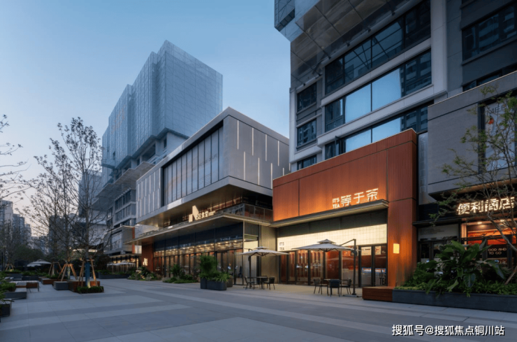 从路易斯·康的轴线秩序,到卡洛·斯卡帕的叠级美学,社区入口以约32米奢阔界面,铺陈印度大花绿石主轴,两侧丛生朴树与红果冬青形成视觉通廊。建筑立面采用香槟色铝板与木纹饰面的对称构图,延续百年江岸人文风貌的"超级符号"。