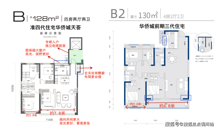 以建面约128平为例,作为准四代住宅的华侨城天荟比华侨城前期三代住宅,在居住体验方面上了N个档次!