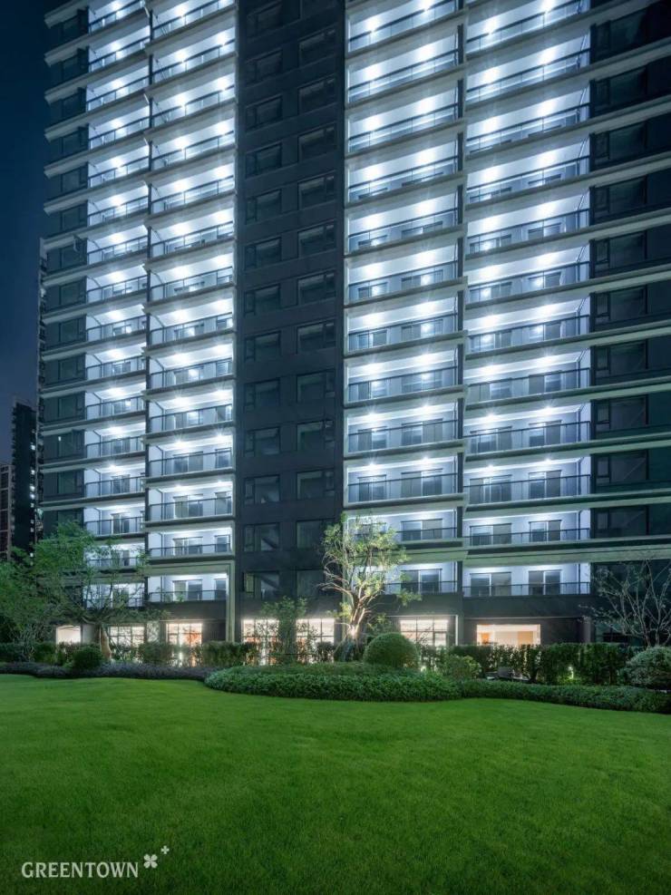建筑风格:采用灰蓝色 LOW-E 中空玻璃,融入三段式经典建筑美学,打造约 0.23 高窗地比现代立面,营造出轻盈非对称、更为灵动的建筑形态。