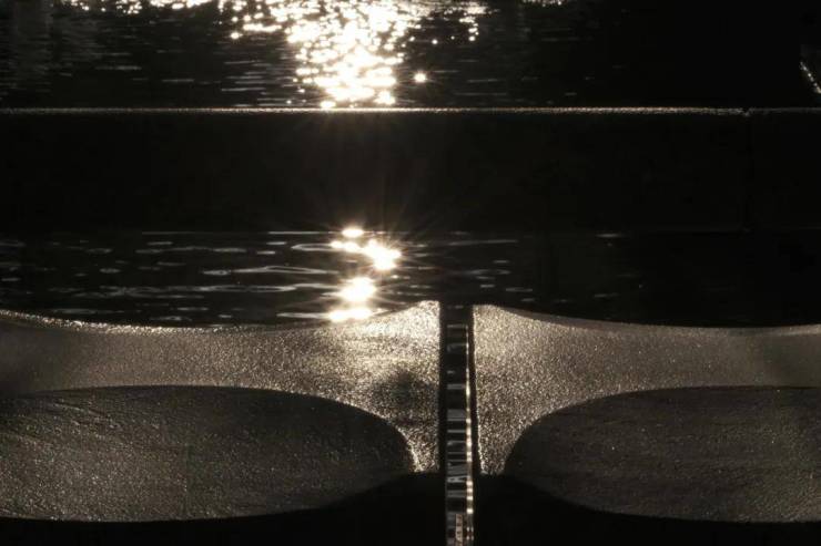 水院搭配婀娜摇曳的多杆乌桕,莫兰迪色系的长效花境,水景使用挪威海洋蓝石材,阳光下与水波纹波光粼粼相互映照,使人能感受到被自然包裹的松弛舒适。