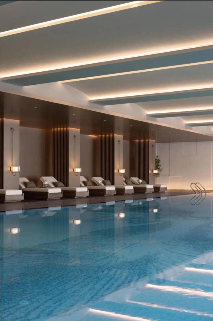 半国标级的无界泳池,一年四季皆可享受24小时恒温体验;泳池底定制繁花造型艺术马赛克更添一丝优雅艺术、落地玻璃窗打破空间与自然的界限,与室外水景无界连接。泳池更衣区具备干湿蒸功能,高奢酒店级精奢服务体验。
