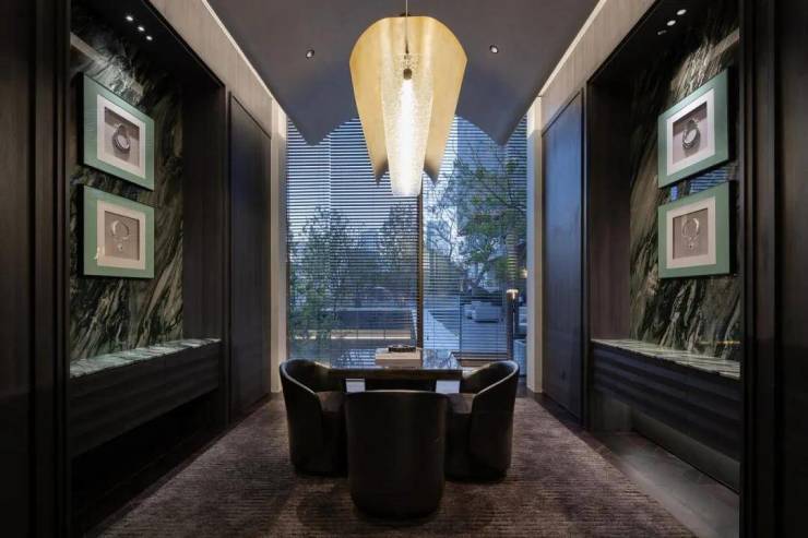不同材质组合营造了丰富的光影效果,夕晖倾斜而下,置身珠帘玉楼翡翠屏,时间与空间在此交织,奢华之上更添一份人文温度。