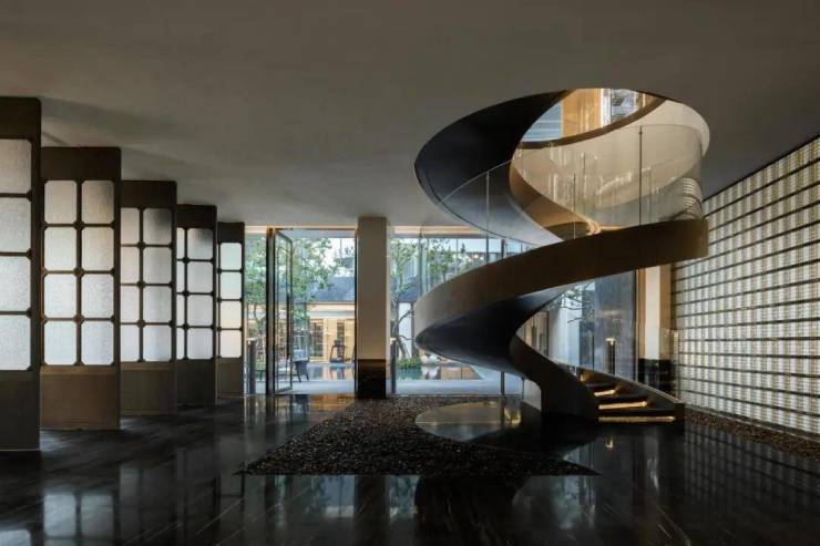 在经常被忽略的地面,天珺也呈现了出其不意的感动。以编织艺术定制席纹石材铺装,如一张精致的地毯,将古典东方意蕴融入步履之下。