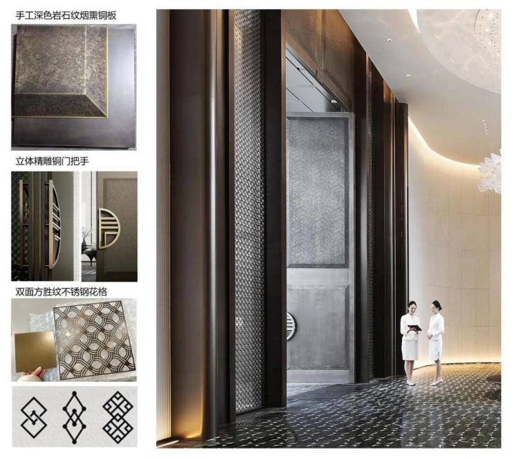 宁波海晏天珺金玉迎门精雕铜门及方胜纹屏风细节(实景图)