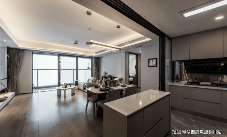 LDKB一体化设计的客餐厅,约5.1米大横厅,构成大平层级别的公区大厅,拉满大宅气场。