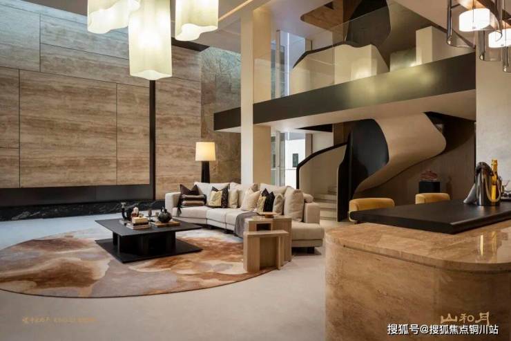 负一层更打造了超大空间墅级会客厅,配合采光井和雅致吧台,营造出极具冲击力的场域。