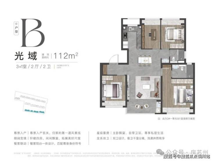 甄选一线精装大牌,匹配居者身份,全屋墙布设计、地面连纹大砖等材质,智能家居装配,人性化细节设计,为美好生活赋能。