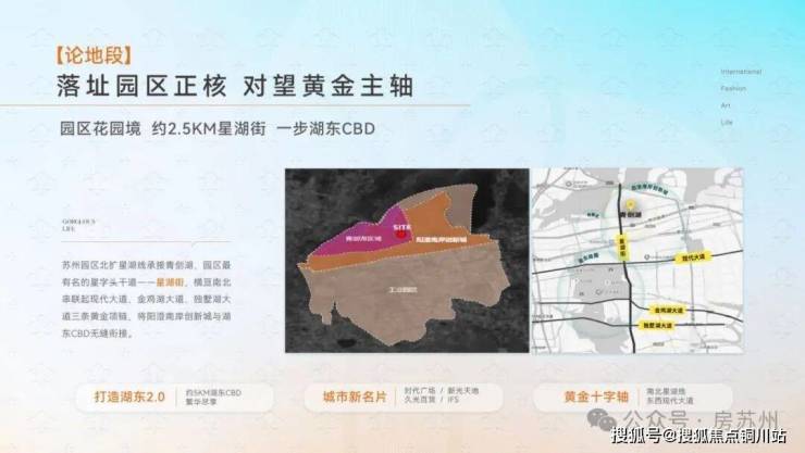 园区北扩星湖线承接青剑湖,打造湖东2.0板块。十字轴上,时代广场、新光天地、久光百货、月光码头、圆融购物中心、ICC、IFS聚合,堪称当下苏州繁华沃土。本案位于星湖街沿线,距离黄金主轴星湖街约2.5公里(直线距离)。