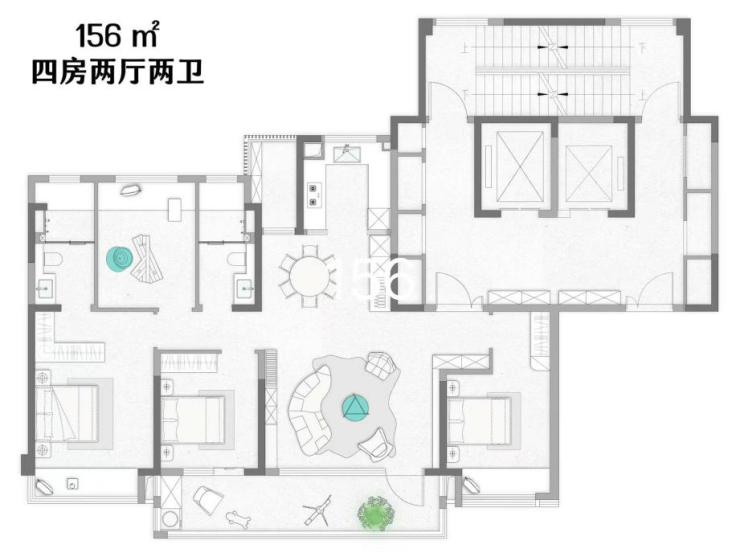 全盘户型全4-6开间朝南+双阳台+全明卫,自带额外X空间。尤其是建面约156㎡户型,南面宽达到约15米,堪比市面上约190㎡户型。