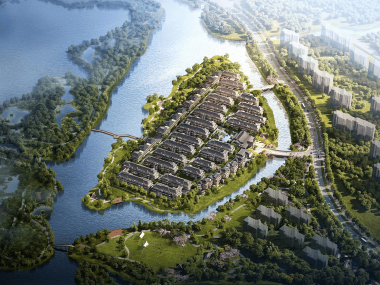 蓝城还特别会利用地形,顺着环湖的不规则地势,搞了南北拼接式合院,不仅每家都能享受到无遮挡水景,还做出了“类独栋”的私密感,不管是居住体验还是未来保值,都很能打。