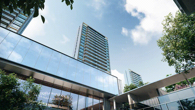 建筑美学:上演墙体消失术,立面打造“全面屏光幕”的流光立面,窗体和装饰玻璃尽量“找平”,一眼望去,通体都是“玻璃皮肤”,国际时尚氛围感十足。