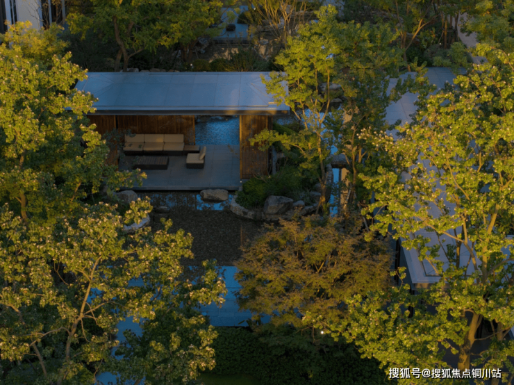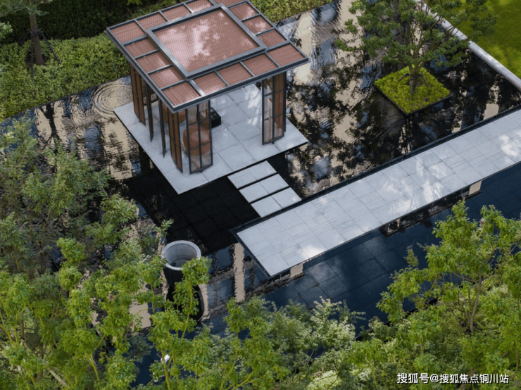 叠水、名花、贵石,自然洄游式的水亭设计,让人仿佛置身野奢度假酒店一般,现代建筑与自然野趣在此相映生辉。