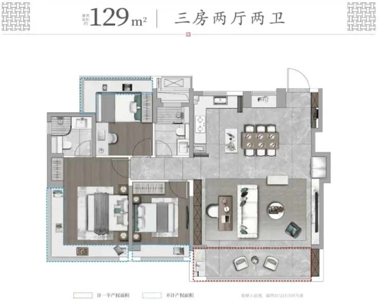 一款户型硬件配置可以比拼,但是建发独特的审美,尤其是在室内部分呼应新中式的设计,很难有房企可以超越。
