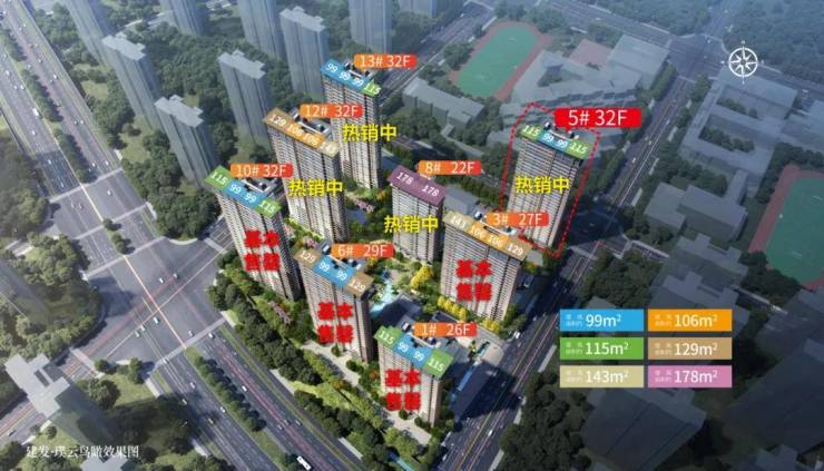 伴随着项目的持续热销,建发璞云建面约99-106㎡已基本售罄,建面约129、143、178㎡所剩也不多了,主力在售建面约115㎡。虽然各户型面积大小有差异,但是任何一个拿出来都亮点满满!这也是建发璞云销售能一路长红的原因,不偏科,每一款户型都是爆款!