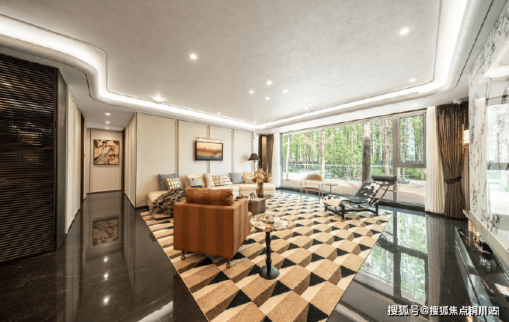 会所围绕下沉式庭院展开,既保障了采光,又大幅提升景观体验。透过落地窗,绿意、光影和潺潺流水尽收眼底,生活与自然温柔相拥。