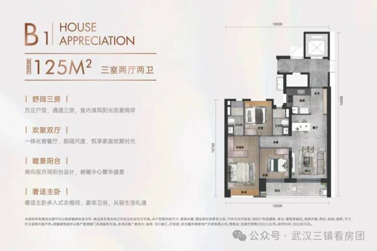 【B1户型建面约125㎡三室两厅两卫】