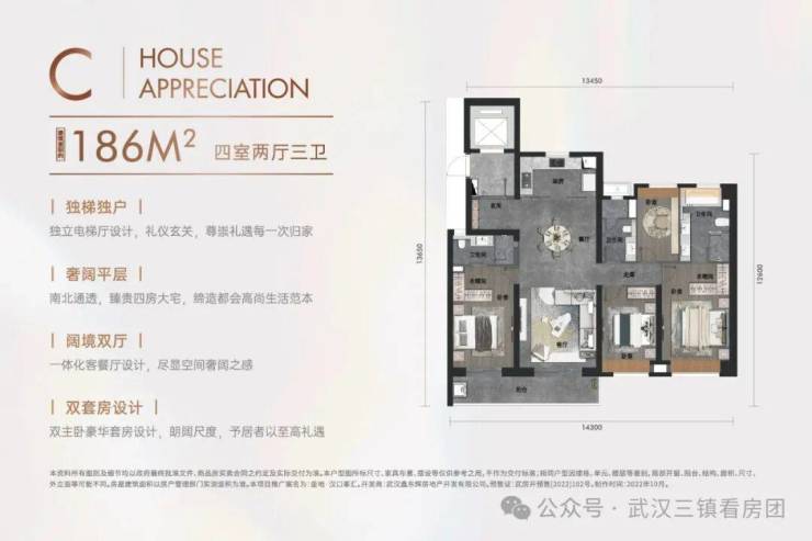 🌟 【C户型建面约186㎡四室两厅三卫】