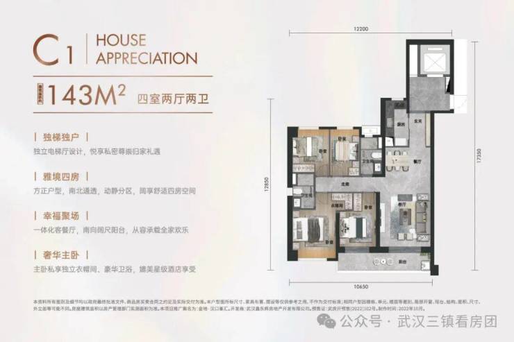 🌟 【C1户型建面约143㎡四室两厅两卫】