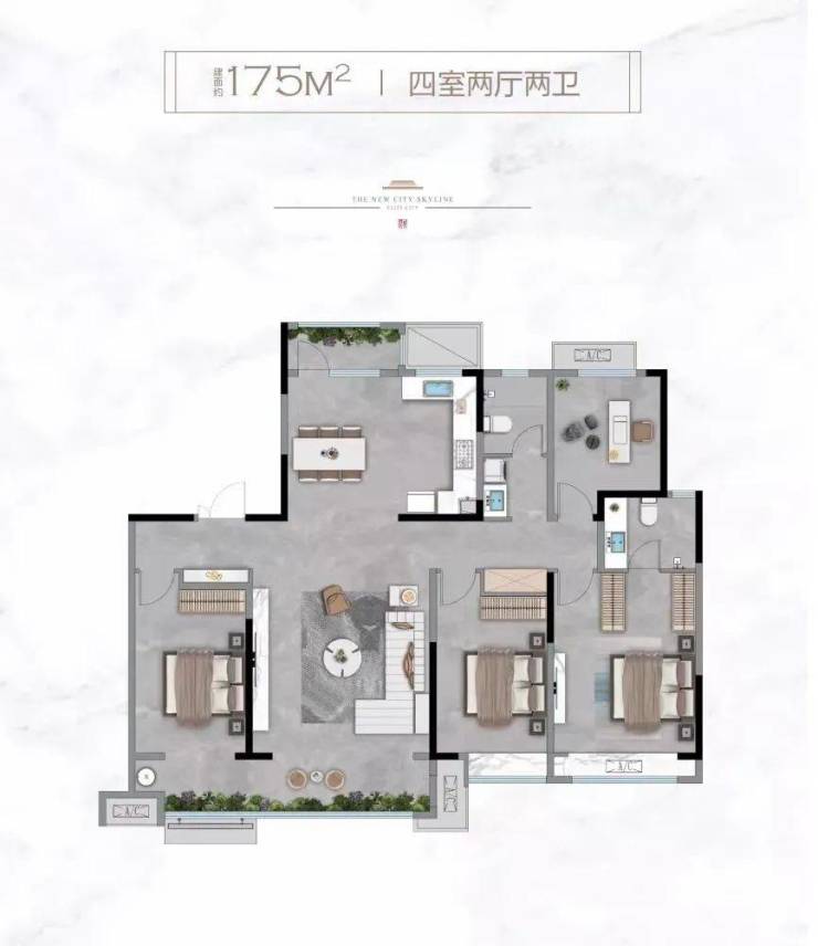 户型设计上,樾系并不出众,存在容积率高、梯户比高、功能性差等问题。比如110平的房子只有一个卫生间,139平大三居虽然设计了宽厅,但是有两个北向卧室,175平的大四居,没有做出相应的空间感,等等。