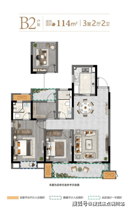 项目目前约90-114㎡高层产品热销中,层高均为3米,大面宽设计,搭载南向大阳台,功能性齐全,能满足了不同置业需求。