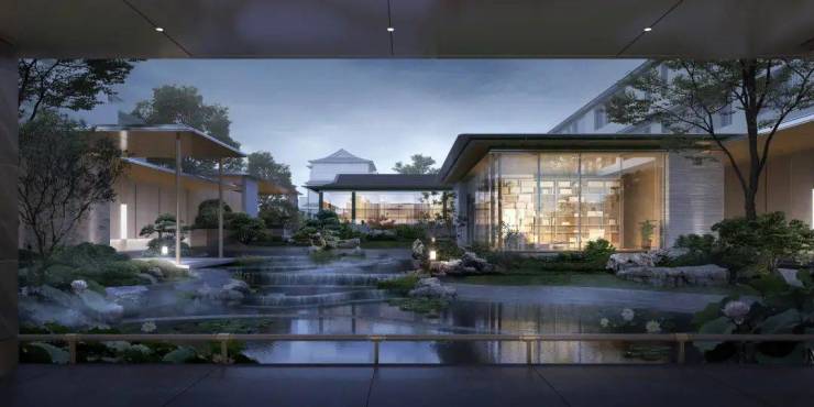 走在小区里,你会被那轻盈的飞檐、精巧的斗拱、雅致的格栅所吸引。这些建筑细节不仅展现了宋代建筑的独特韵味,更融入了现代的设计理念,实现了传统与现代的完美融合。从前厅到中庭,再到后院,整个小区的布局以自然为纽带,将生活动线巧妙串联起来。