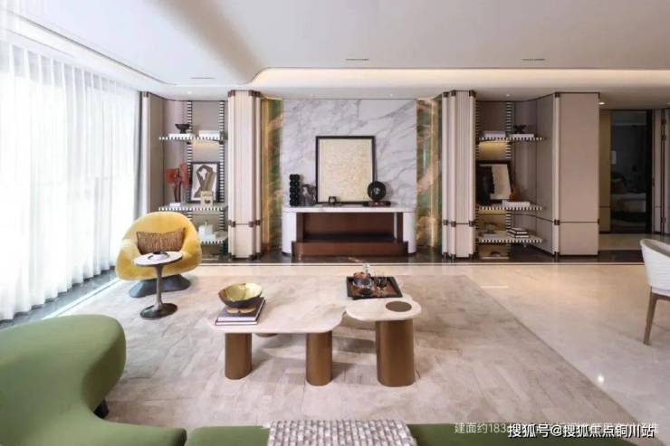 譬如,在『臻萃』海派样板间,客厅“芬迪白”转角奢石,坚持选择更高成本和难度的弧形工艺,只为呈现更优雅、生动的视觉观感;主卧定制Mini Bar ,供存放茶水、藏酒、小食等,还原酒店行政套房的奢居质感,甚至还贴心地将走入式衣帽间靠近床侧的柜体局部打通,便于取用衣物。