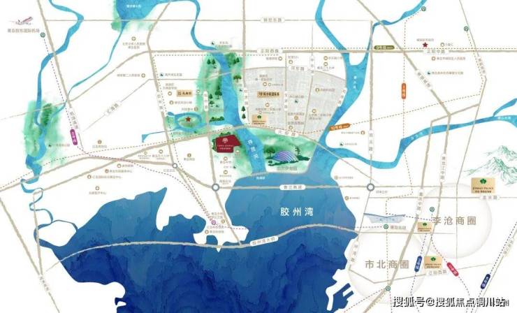 ④交通之芯:规划地铁10号线链接高铁站及白沙河,胶东国际机场、高铁红岛站,陆/空/轨/高铁四大交通体系通达八方