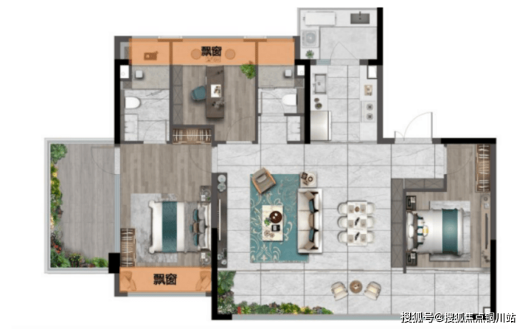同样是利用率100%,不同的户型也千差万别。瑞园的这款117㎡户型,最大的特点是均衡。面宽较大,进深也到位。比如次卧空间,由于阳台面积的加入,使得这款户型在放下一张大床、一个衣柜之后,还有空间放一张书桌,实用性大大增强。主卧的尺度更是均衡,飘窗延展了进深,露台强化了面宽视觉,让整个空间实现了大平层的空间体验。