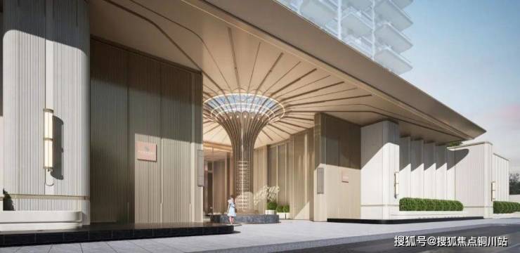建筑通体主要为香槟色,立面以两层为单元进行统一设计,呈现出整体主次分明,挺拔向上的建筑形象。翼板尺度纤细,线条顺滑,出檐深远,质感细腻,立面充满未来感的同时又不失家庭应有的温和元素。