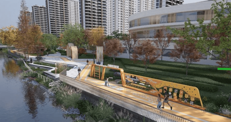 璀璨长乐经过多轮TOD生活动线、业主社交需求的精研,通过2大动线、6大沉浸式园林节点、8大业主客厅的升级、高标准实景呈现,将璀璨生活提前呈现: