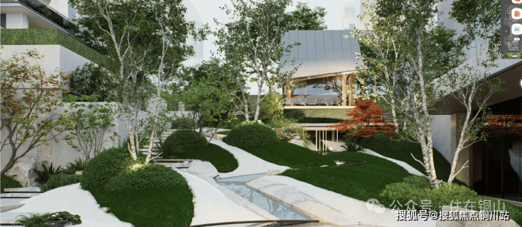 比起檐语间的平面园林,这里直接升级成立体山水!约1000㎡下沉庭院藏着叠瀑潺潺,一步一景,不是简单的绿植堆砌,而是能沉浸式逛的游园。