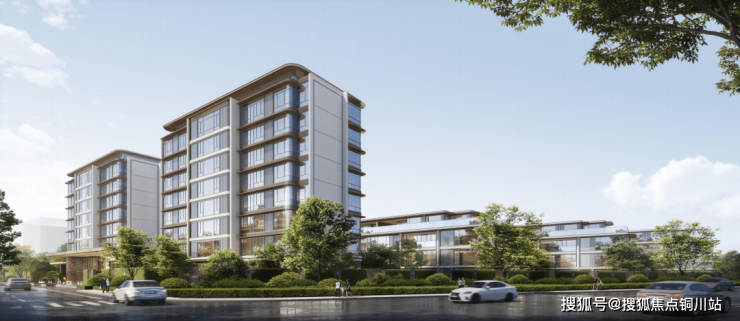 从效果图来看,整个社区呈“北高南低”排布,外立面以大面积玻璃为主,用金色线条点缀,简洁流畅,质感满满。