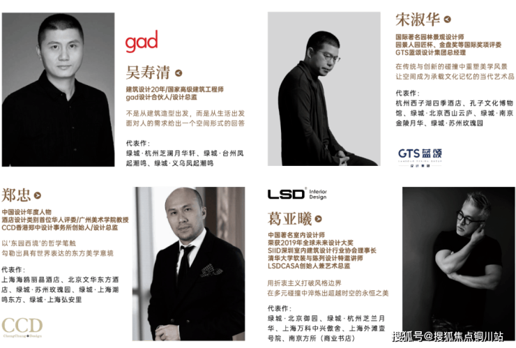 项目邀请全球大师团队联袂执笔:gad设计合伙人吴寿清负责建筑整体规划、GTS蓝颂总经理宋淑华主持景观设计、CCD郑忠担纲室内精装、LSD葛亚曦完成软装与美学把控。