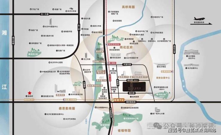 位于雨花区政府核心区域和高铁会展新城,区府牵引,周边配套集政务、教育、商业、交通、生态于一体;