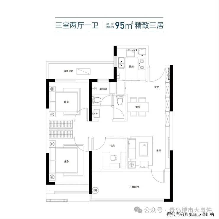 建面约95㎡采用三室两厅1.5卫布局,配备约12㎡南向观景阳台,约2.1米大进深;高赠送越90%得房率,同比市面约105㎡户型,十分契合刚需及刚改家庭所需。