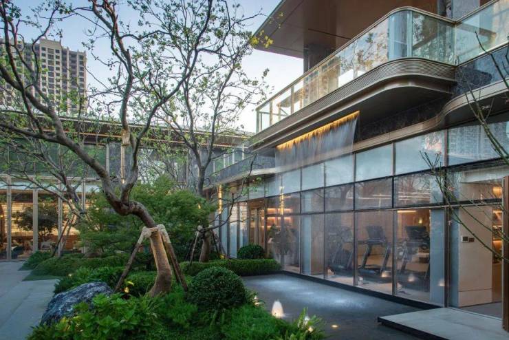 链接人与自然,提取虹夕诺雅奢华度假酒店理念,将水、林、石、亭等自然元素与小区景观充分融合,让业主在归家体验中与自然空间有更亲密接触,打造纯粹的诗意森屿。约2.5容积率的低密规划,让1100㎡下沉庭院成为虹夕诺雅式的私藏秘境,空中观景亭悬于流水飞瀑之上,林荫树影,在四季轮回中导演一场永不落幕的山水雅集。
