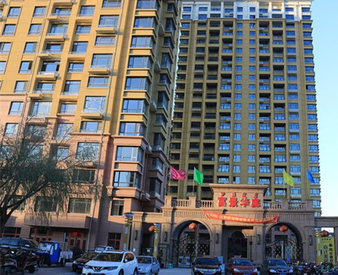 富景华庭二期,位于科尔沁区,永清大街以北、中医院西侧。项目占地面积40906.4平方米,总建筑面积204664平方米。由15栋住宅,1栋商业、一栋公寓酒店及1栋物业楼组成。车位配比1:1。