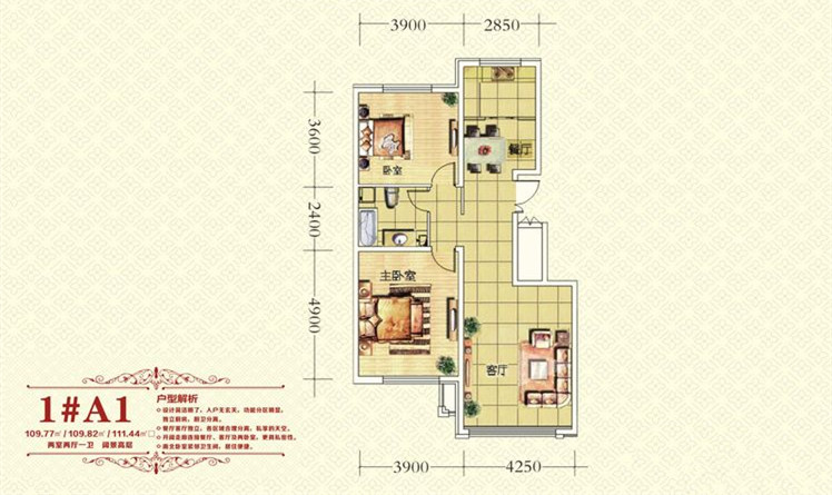 2室2厅1卫-1#A1户型