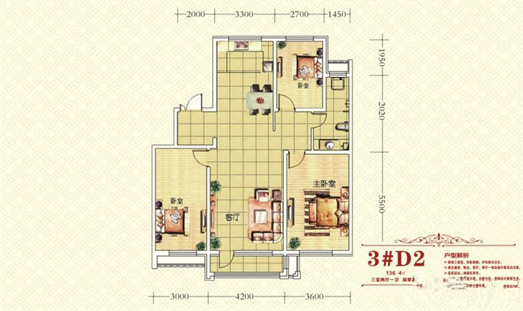 3室2厅1卫-3#D2户型