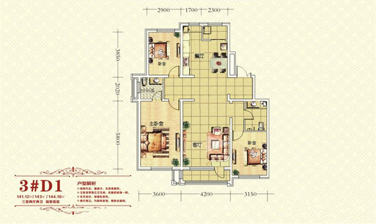 3室2厅2卫-3#D1户型
