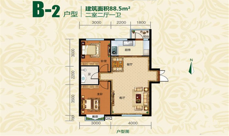 2室2厅1卫-户型B2